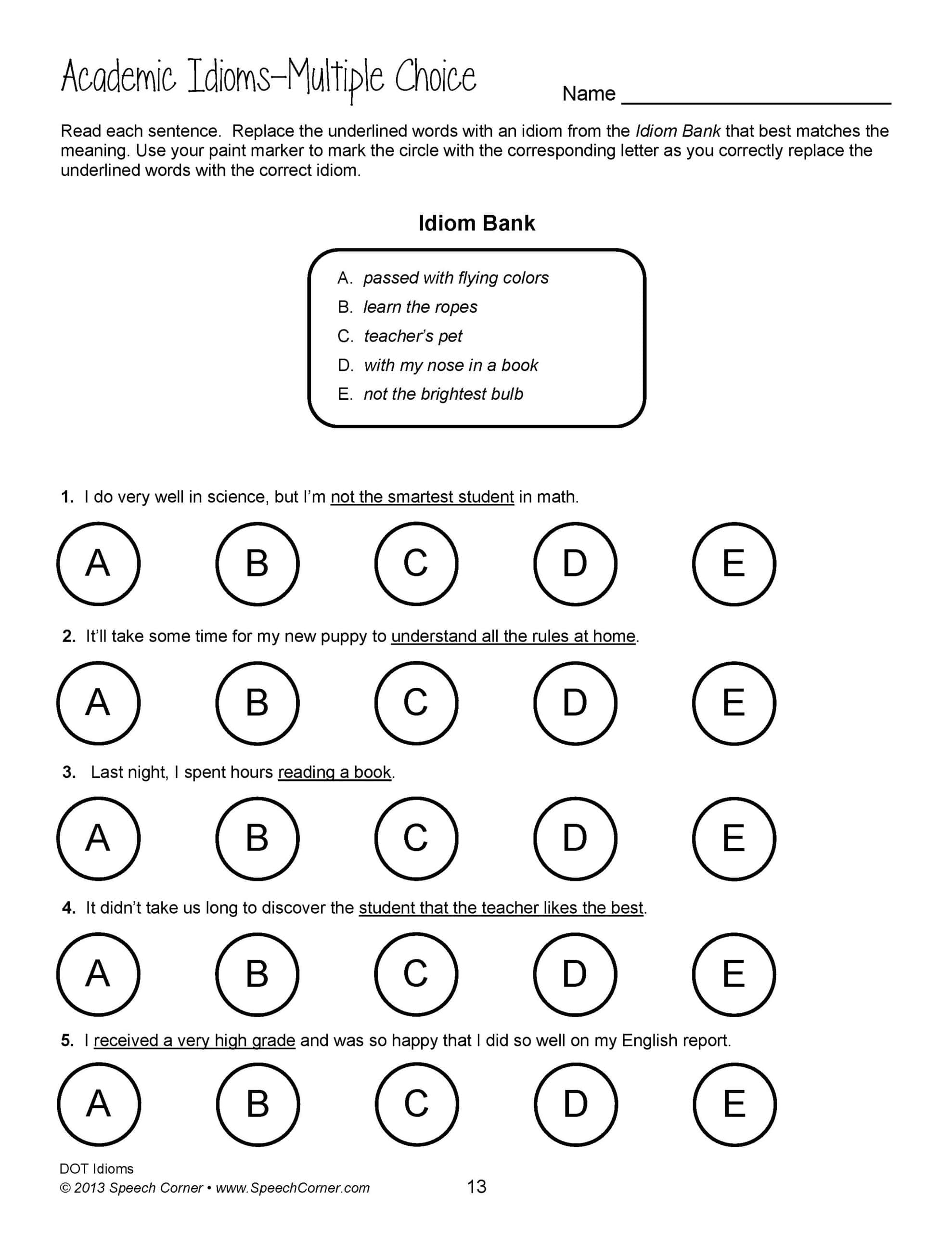 Idioms Worksheets