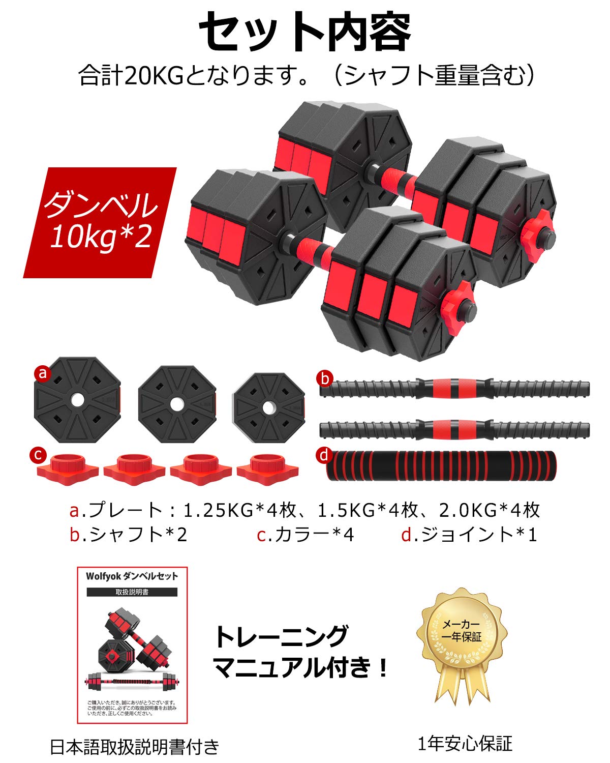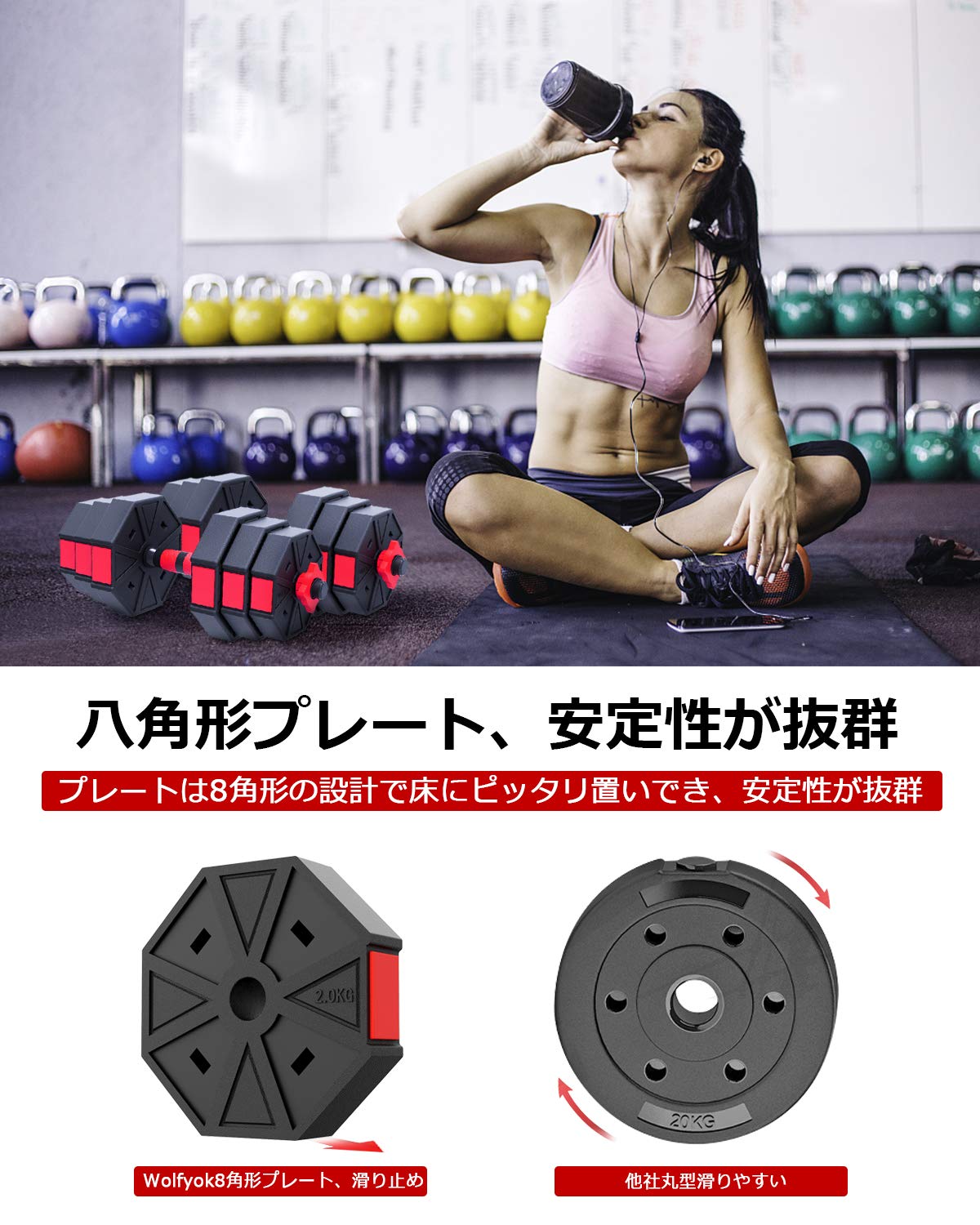 Mua ダンベル kg 可変式 八角形構造 最新進化版 3in1 バーベルに変更可能 kgセット 10kgx2 アレー 錆びない Wolfyok 筋トレ アレイ ウェイトトレーニング器具 ダイエット ポリエチレン製 超静音 床傷防止 一年安心保証 日本語取扱説明書 Tren Amazon Nhật Chinh