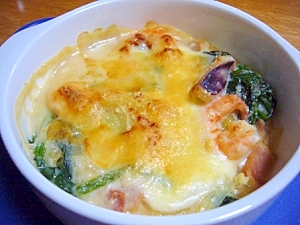 時単 マカロニグラタンの素使用 ホウレン草グラタン レシピ 作り方 By チッチとカム 楽天レシピ