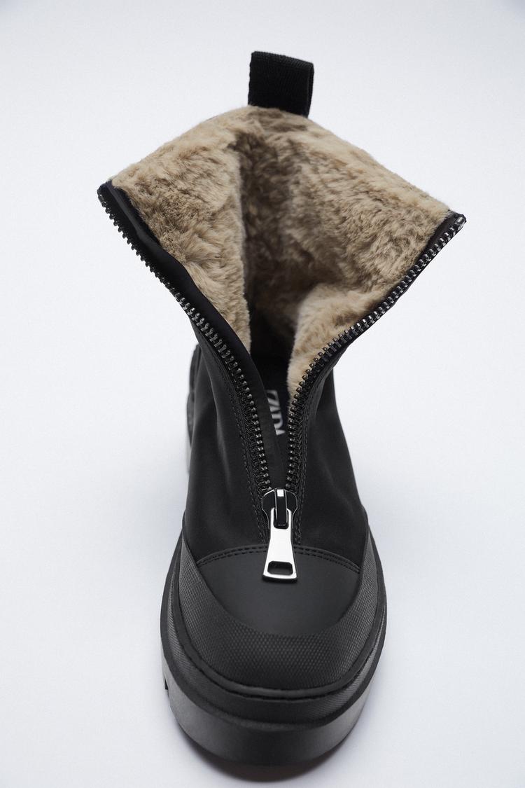 フェイクファーインナー ジッパー フラットフォームアンクルブーツ Zara Japan 日本