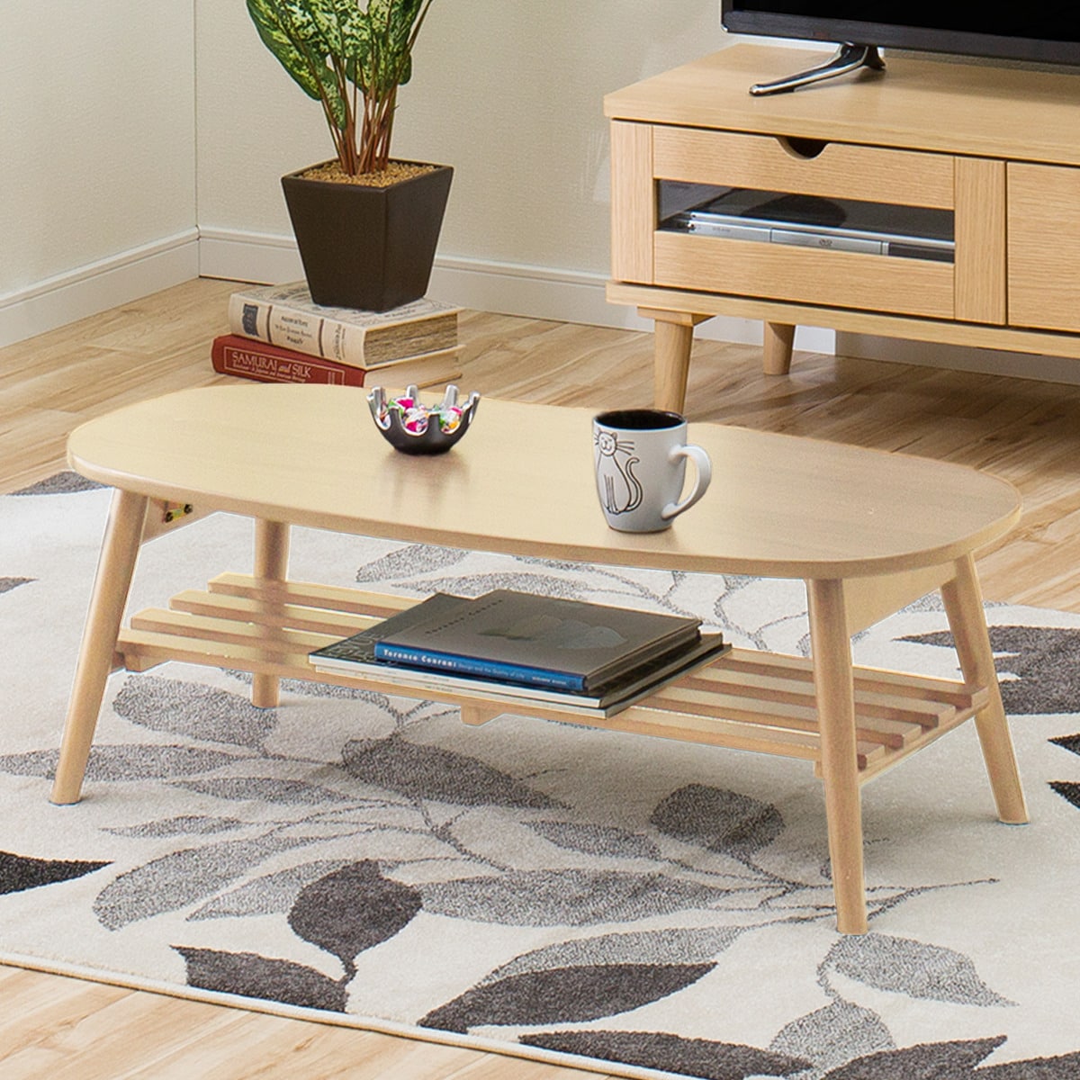 折りたたみテーブル ラポール だ円 棚付き ナチュラル 通販 ニトリネット 公式 家具 インテリア通販